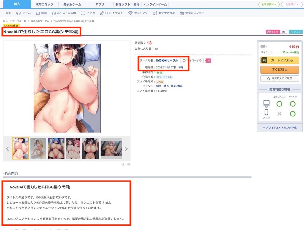 過去に販売した作品の情報で大体AIかどうかを絞れます。